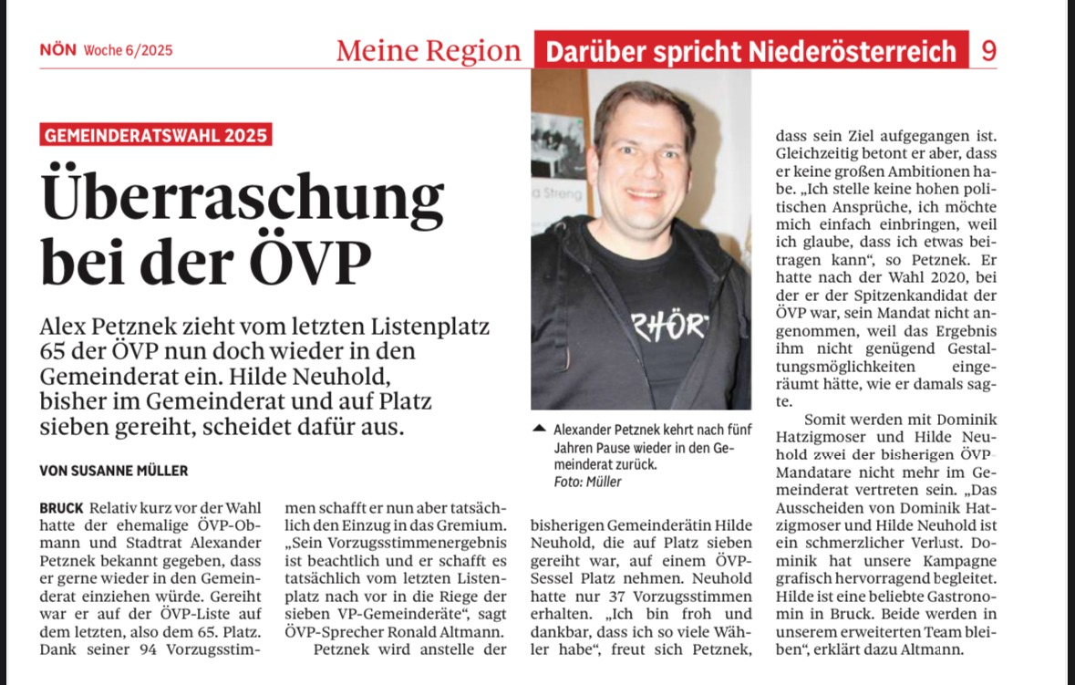 Zurück zur Übersicht Nach 5 Jahren Pause mit Vozugsstimmen vom letzten Platz den Wiedereinzug in den Gemeindrat geschafft